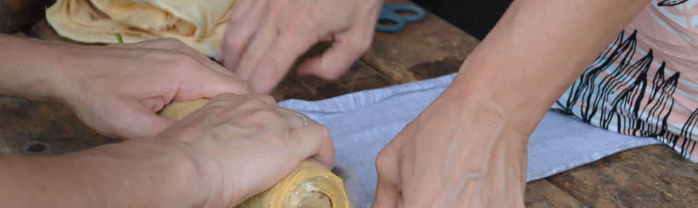 A Chef Nayara e Fadi Mansour preparando uma sobremesa tipica libanesa. Chef Nayara and Fadi Mansour preparing a traditional Lebanese dessert.